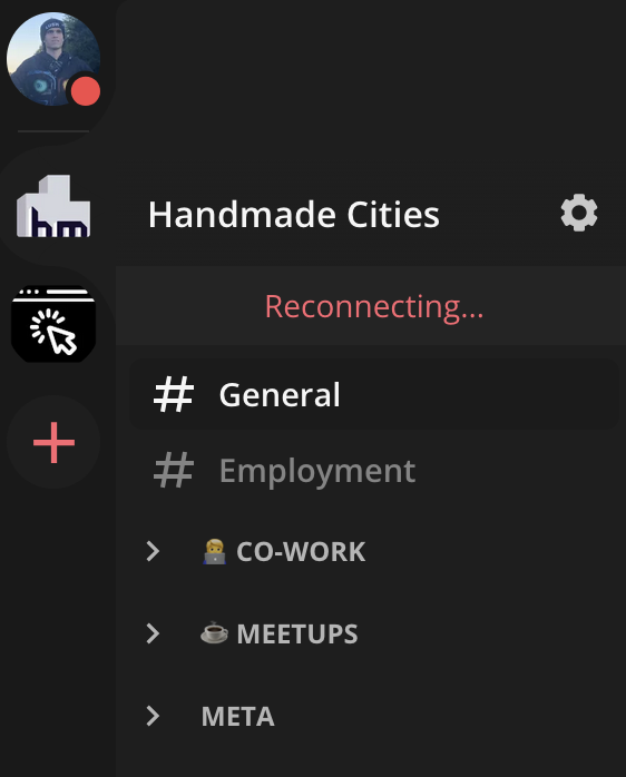 When Handmade Cities performs server maintenance (or upgrades) the chat client displays a Reconnecting... message:
